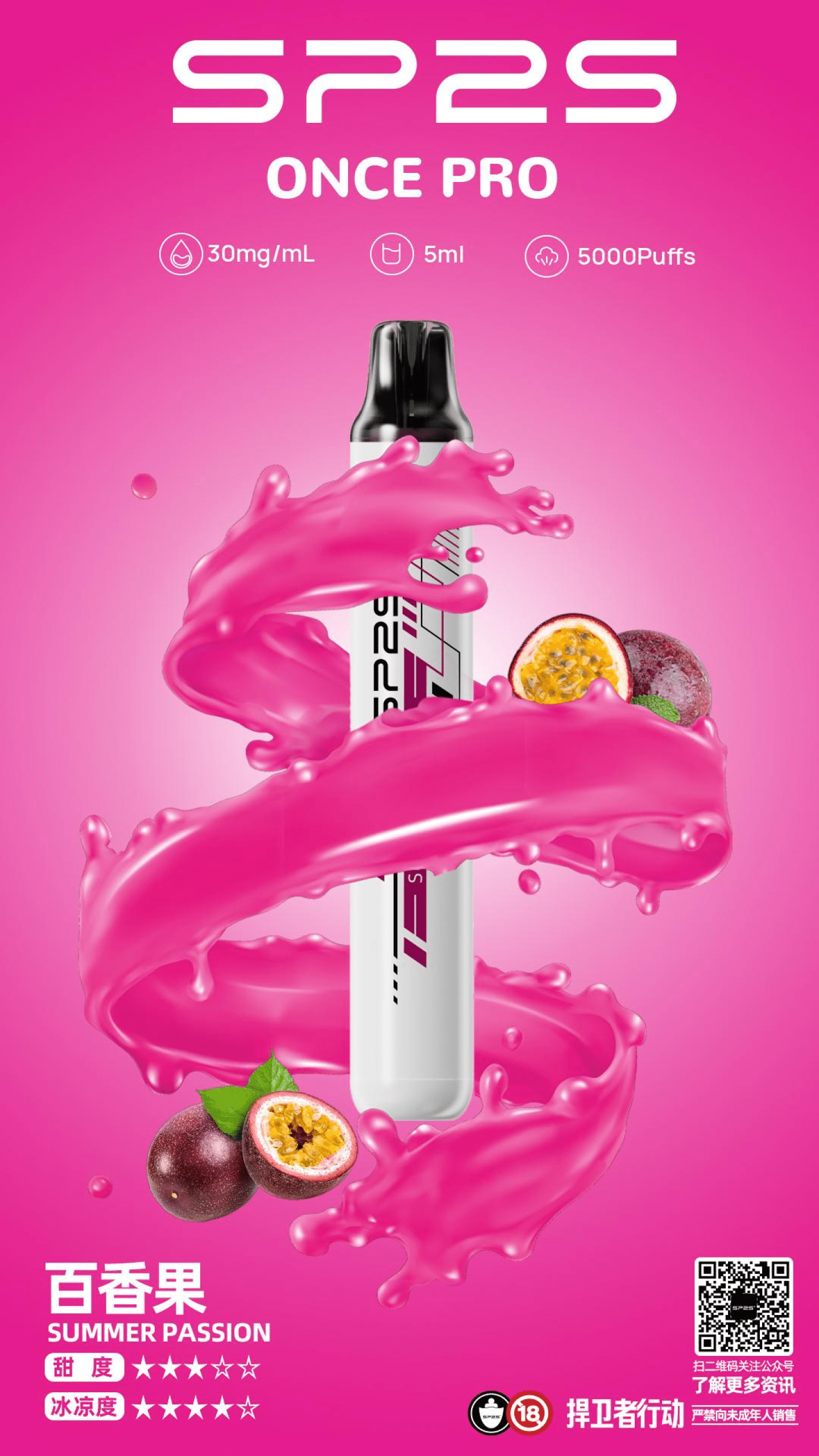 SP2S Once Pro 思博瑞 5000 口一次性電子煙主打「耐用、省事、輸出穩」三大重點,採用升級霧化模組,帶來更飽滿的風味與更一致的霧化表現,煙霧量扎實、口感順滑,適合喜歡穩定大霧量體驗的使用者。