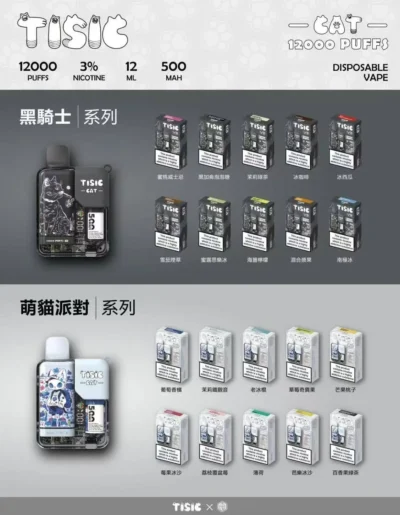 TISIC 黑騎士&萌貓派對 12000口一次性電子煙|高顏值造型×長效續航拋棄式裝置